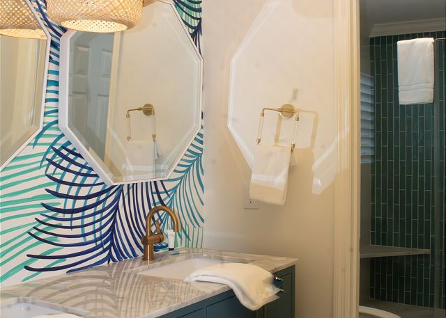 The addition of a third floor makes this home a fantastic extended family vacation rental. At the top of the stairs is a TV viewing area, two bedrooms, and a bathroom. We call this the kid’s floor! The middle hall bedroom has a twin bedroom. Across the hall is a full bathroom with tub/ shower combo shared with the large bedroom at the end of the hall with a twin bunk set and a Double bed! There is plenty of space for kids of all ages to spread out and have their own space.