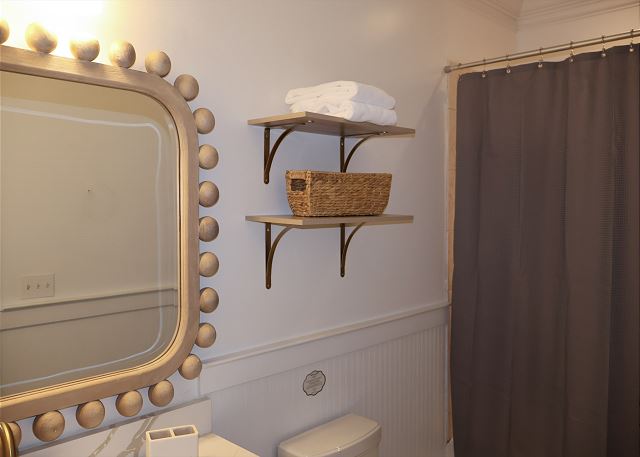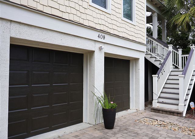 Upon entering Sweet Carolina, a grand staircase greats you in the foyer, it’s the perfect spot for family photos. The home has a reverse floor plan, with the main living area at the top of the stairs. The stylish kitchen will make prepping meals a delight, boasting Onyx countertops, stainless steel appliances and a stand alone ice maker. Plenty of seating is provided at the kitchen bar for 4 and the dining room seats 8. The living room has two couches and a chair with a working gas fireplace and a flat-screen TV. These rooms have 8-foot tall French doors leading to a wraparound deck. A comfortable seating area and access to the rooftop deck via a spiral staircase. You will want to spend every evening watching the sunset from the rooftop deck with seating for everyone and wonderful views of the Isle of Palms!