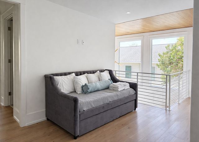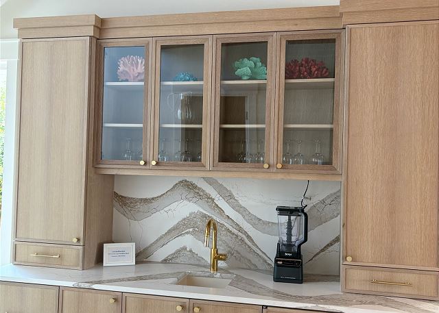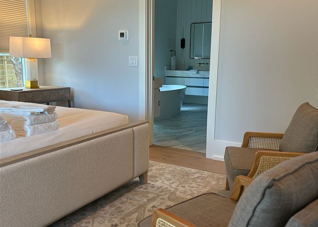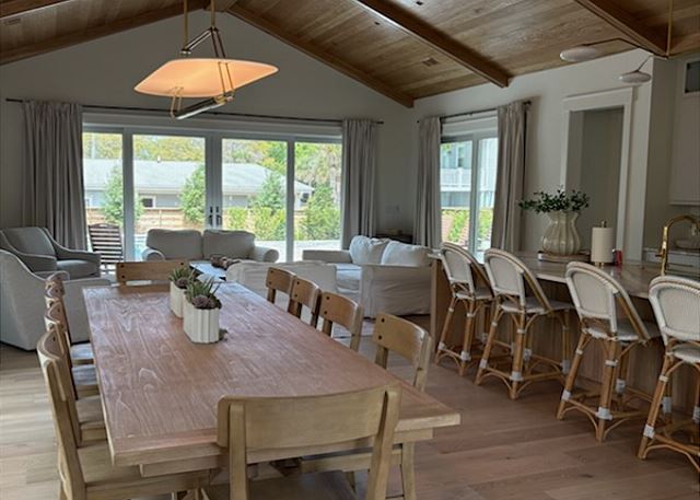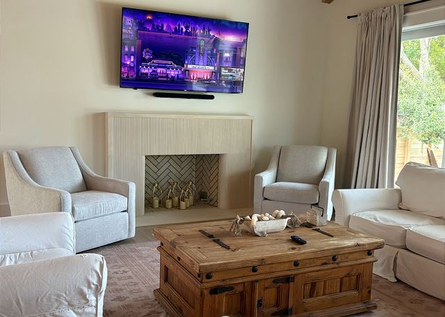 At the center of the home is a professional chef’s kitchen, featuring premium stainless steel appliances, custom cabinetry, and a large statement island designed for both entertaining and everyday comfort. Whether preparing meals for a full group or enjoying a casual breakfast before the beach, this space flows seamlessly into the expansive living and dining areas. Trade your remote for a seashell. With only one TV in the living room for group movie nights, reserving the rest of the house for relaxation and tranquility.
