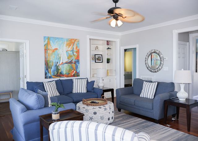 Located just steps from the beach, watch the pelicans fly over from this lovely home boasting full ocean views! This 5-bedroom island home features an open living area with hardwood floors and a spacious kitchen.